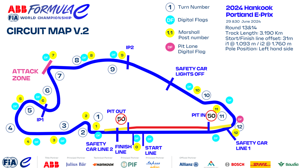 今回のポートランドePrixでの最大使用可能エネルギー量は38kWh。周回数は第13戦が27周、14戦が26周となっている。