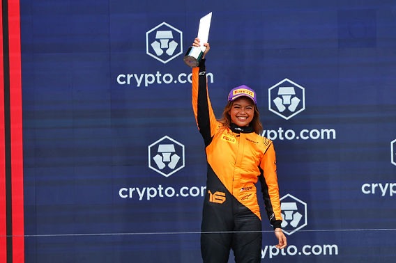 ブスタマンテは2023年の10月よりマクラーレンの育成ドライバー契約を結んでおり、F1アカデミーでは”マクラーレンカラーの”マシンをドライブしている。