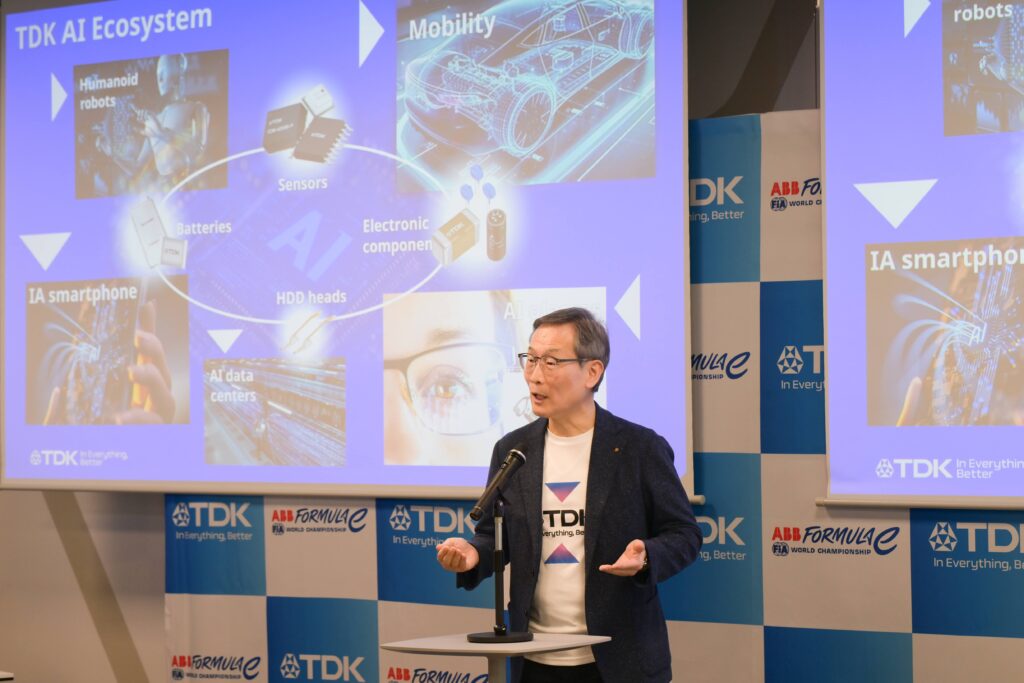 TDK 代表取締役 社長執行役員 CEOの斎藤昇氏は「TDK はこれまでもモビリティ産業を重要な成長分野と位置づけており、本パートナーシップを通じ、モビリティ産業の更なる Transformation に貢献してまいります。当社がモビリティ産業にとってさらに信頼される重要なパートナーであり続けるために、車両の電動化に加え、安全システムや自動運転技術等のデータドリブンインテリジェンスに戦略的に取り組み、内側からその Transformation を支えていきます。従来の内燃機関車にも既に多くの TDK 製品が搭載されており、電気自動車では搭載数がさらに増加します。モビリティは TDK の AI エコシステムの基盤であり、内側からイノベーションを推進することで、よりスマートで、安全で、優れたモビリティ社会の実現に向けて取り組んでまいります。こうした取り組みの中で、TDK はフォーミュラ E の掲げるビジョンに共感し、パートナーシップを決定しました。ホームである東京大会のタイトルパートナーを務めることを誇りに思います」とコメントしている。