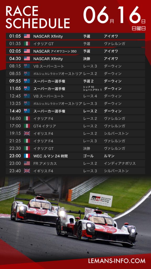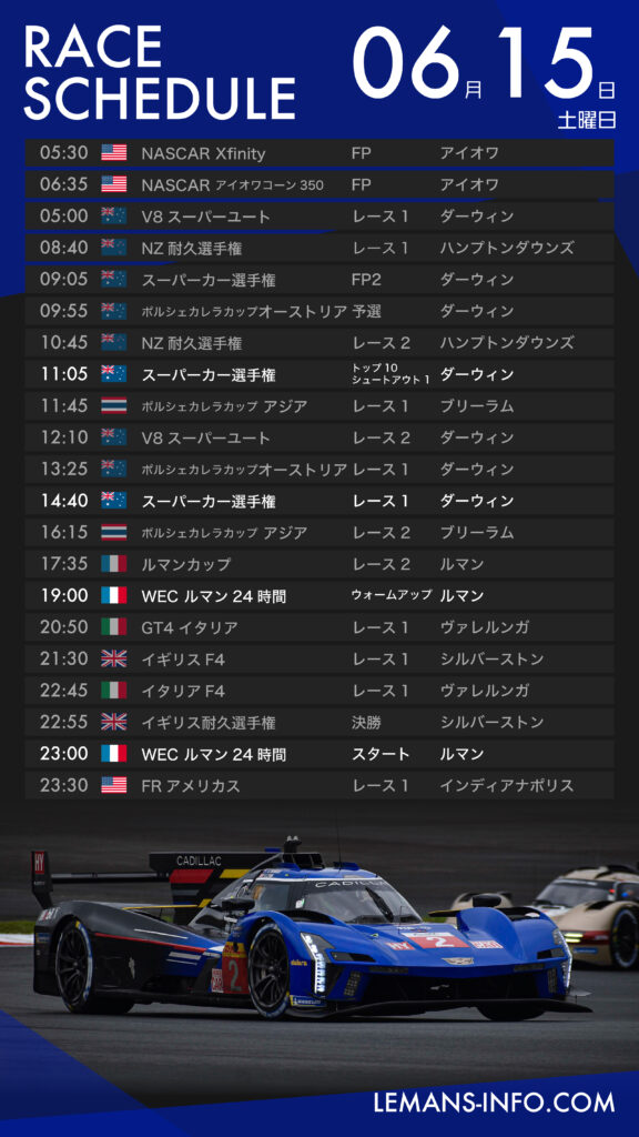レーススケジュール2024年6月14~17日の主なレーススケジュール。ル・マンがある一年で最も特別な週末だ。