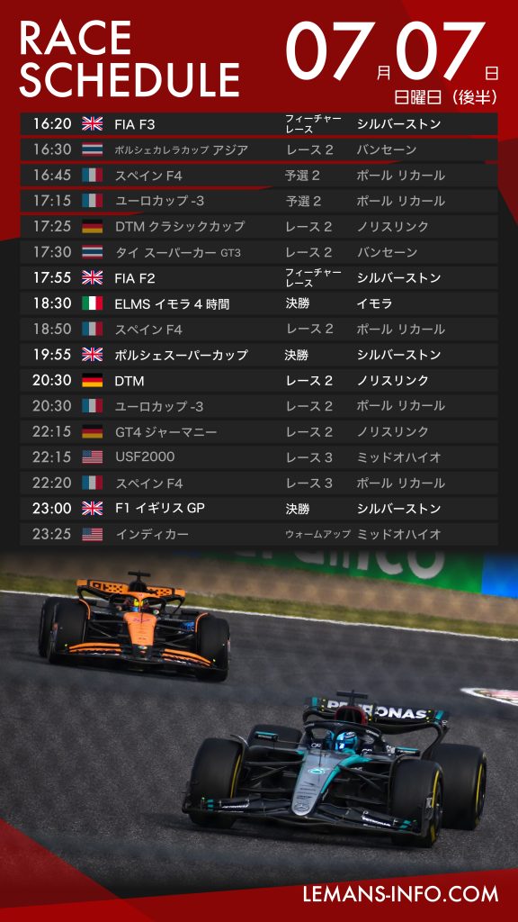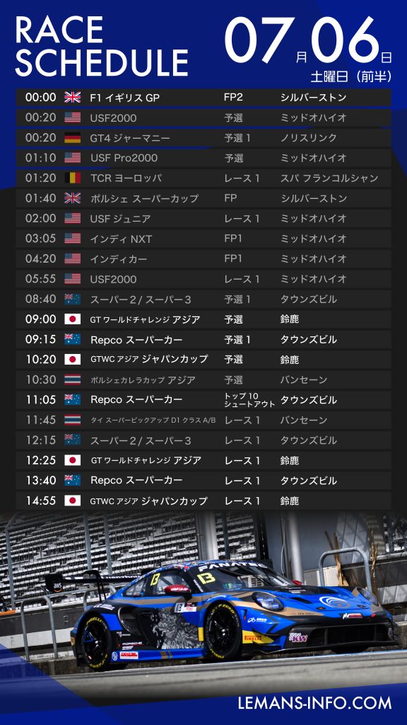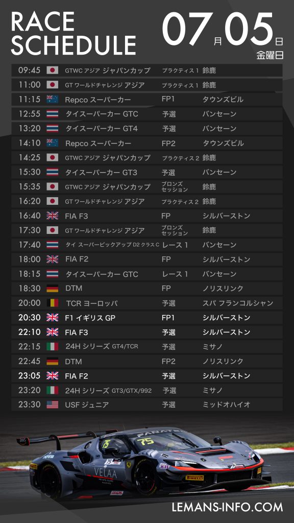 7月5日から8日までのレーススケジュール。