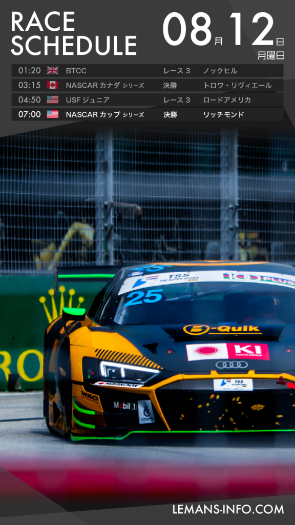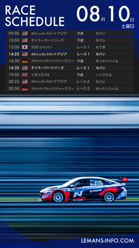レーススケジュール8月10日から12日までのレーススケジュール。国内ではTCRジャパンが行われる。
