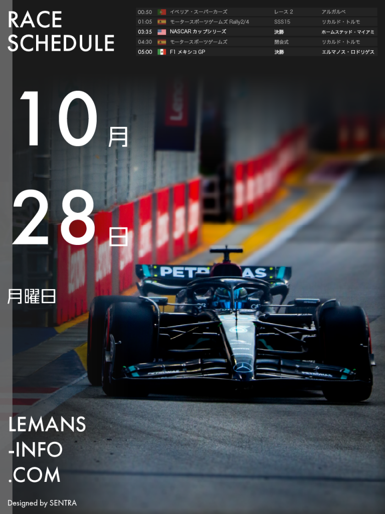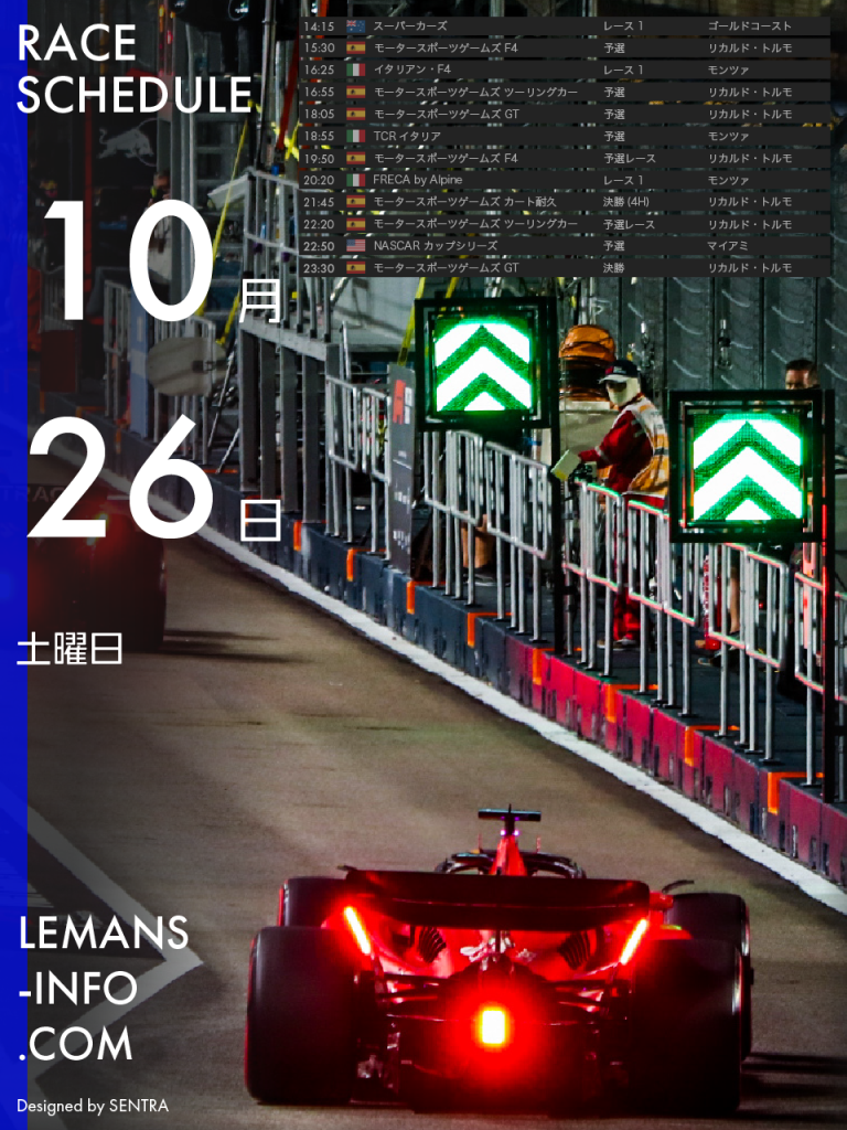レーススケジュール10月26日から28日までのスケジュール。自動車レースの祭典、FIAモータースポーツゲームズが開催されます!