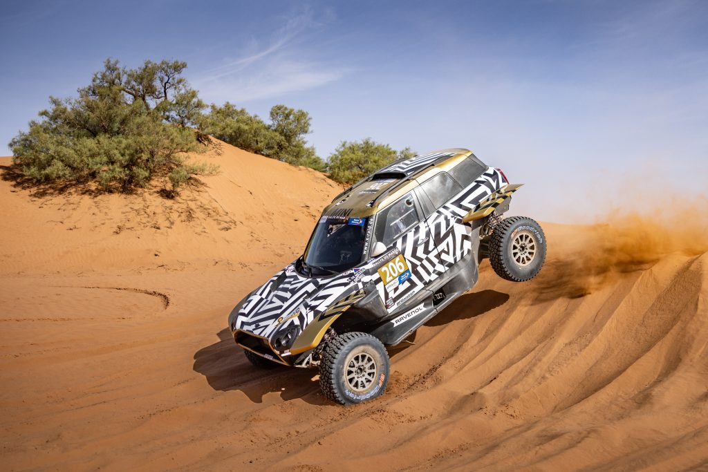 X-Raid Mini JCWのギヨーム・ド・メビウスは195キロポスト時点では2位のローブと34秒差の暫定トップに立っていた。しかし、ステージ後半でローブが攻勢をかけると差がみるみる縮まり、ASS直前の272キロポストでローブがド・メビウスを4秒上回る。ラスト55キロでの真っ向勝負に持ち込まれたド・メビウスは3位のサインツを27秒引き離す猛アタックで抵抗するも、ラリーの神様ローブには届かず。X-Raid Miniでの初勝利は持ち越しとなった。
